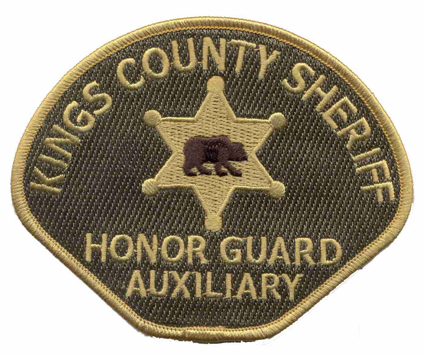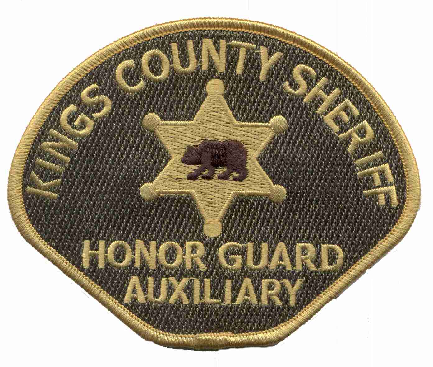 | The Kings County Sheriff's Department Honor Guard Auxiliary will be offering a limited number of their shoulder patches for sale. These patches are official patches of the Kings County Sheriff's Department and are worn by the Sheriff's Department Honor Guard Auxiliary. 100% of the proceeds will go directly to the Sheriff's Department Honor Guard Auxiliary Fund to purchase needed equipment. Patches are available for a donation of $20 per pair, left and right facing bears. Send a stamped, self addressed envelope and a check or money order made out to 1st Priority, Attention: Mitch Gerking 6770 18 3/4 Avenue Lemoore, CA 93245. |
